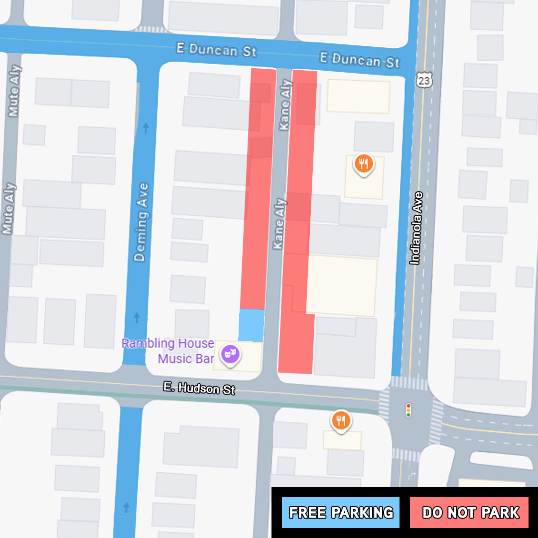 Just make sure to stay away from the residential spaces in the surrounding alleys, as those are subject to towing and we don’t want to upset our neighbors!