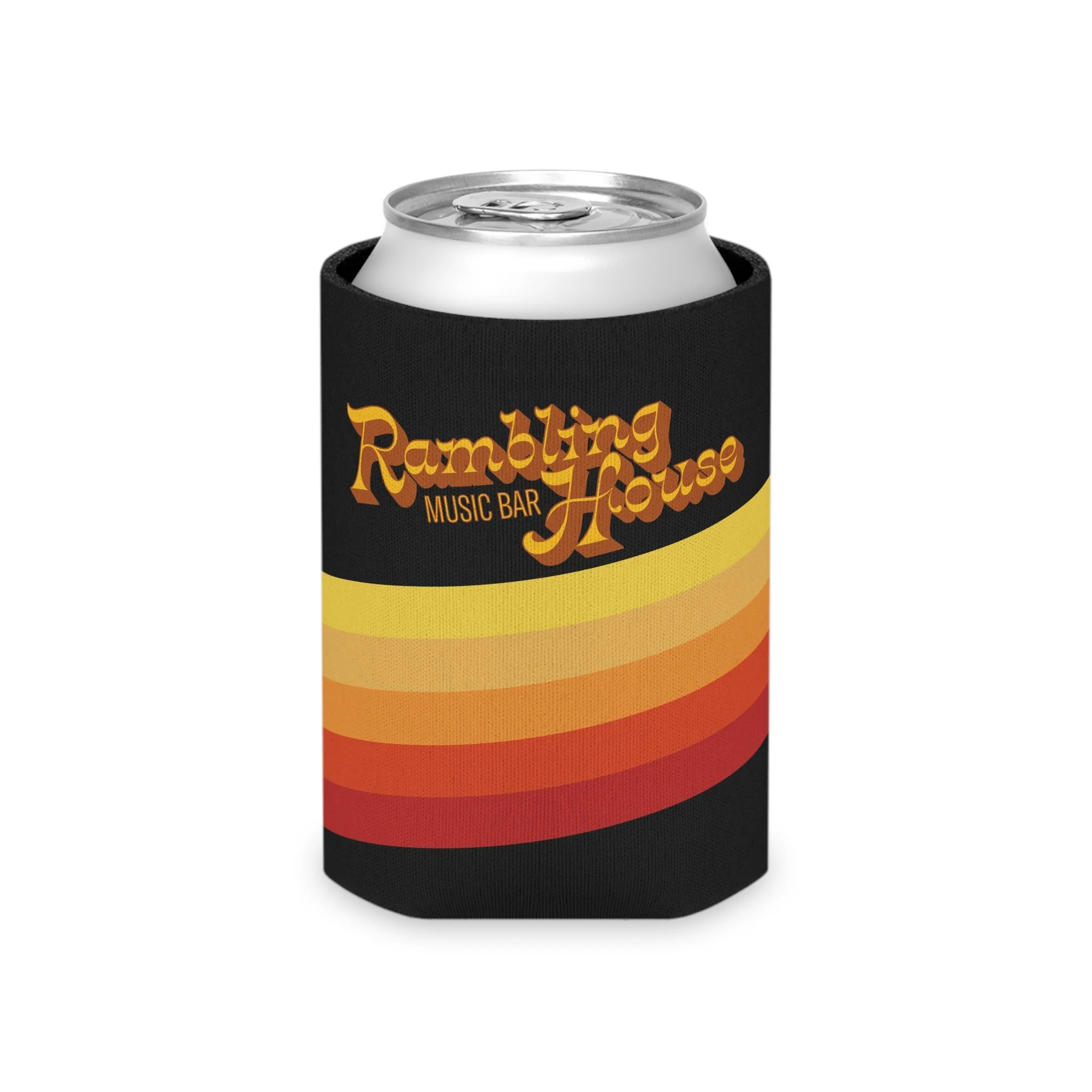 Can cooler with printed Rambling House Music Bar logo and stripes and "Y'all" text on the bottom.