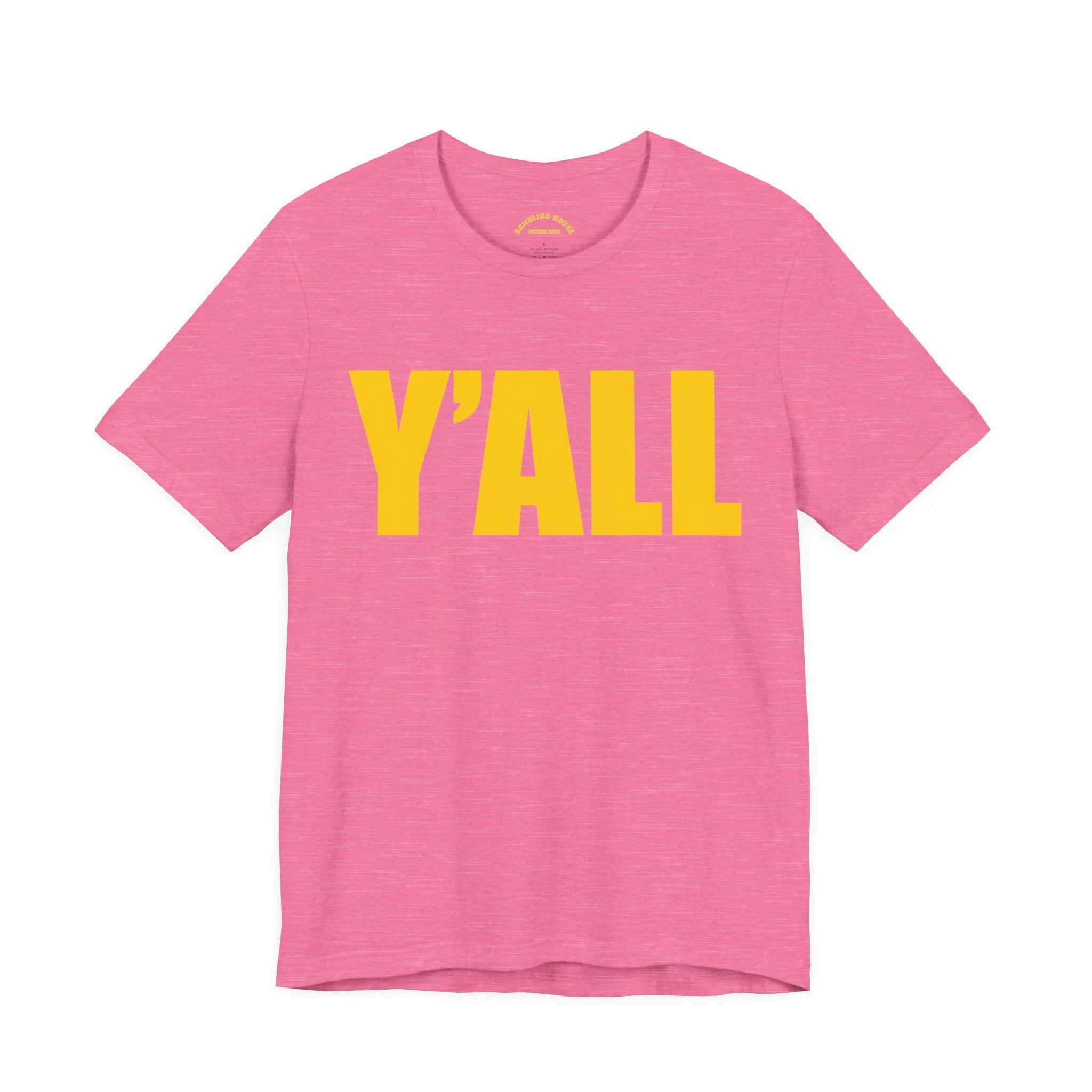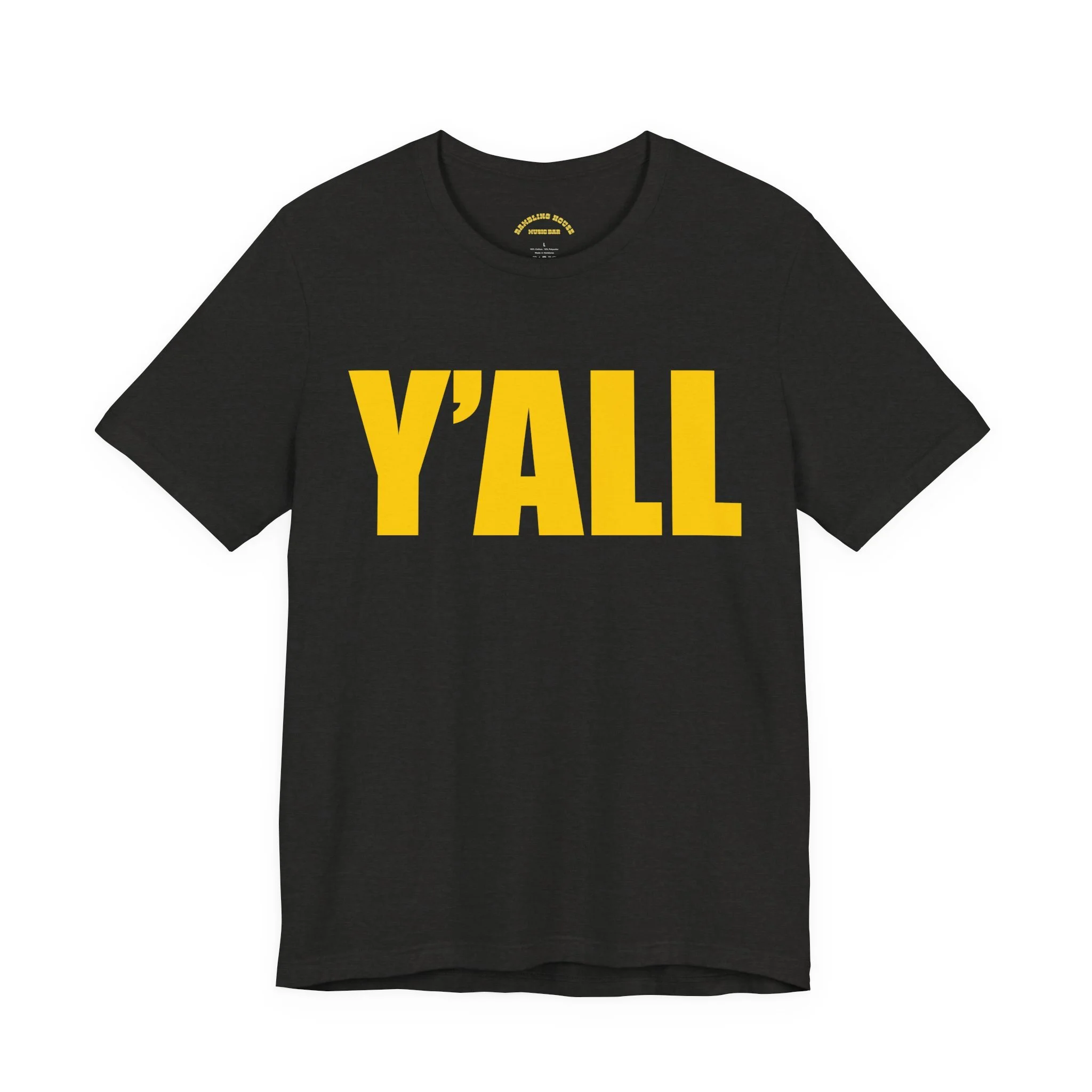 Lightweight tee shirt with "Y'ALL" block text on front and Rambling House Music Bar logo on back. Available in 8 colors.